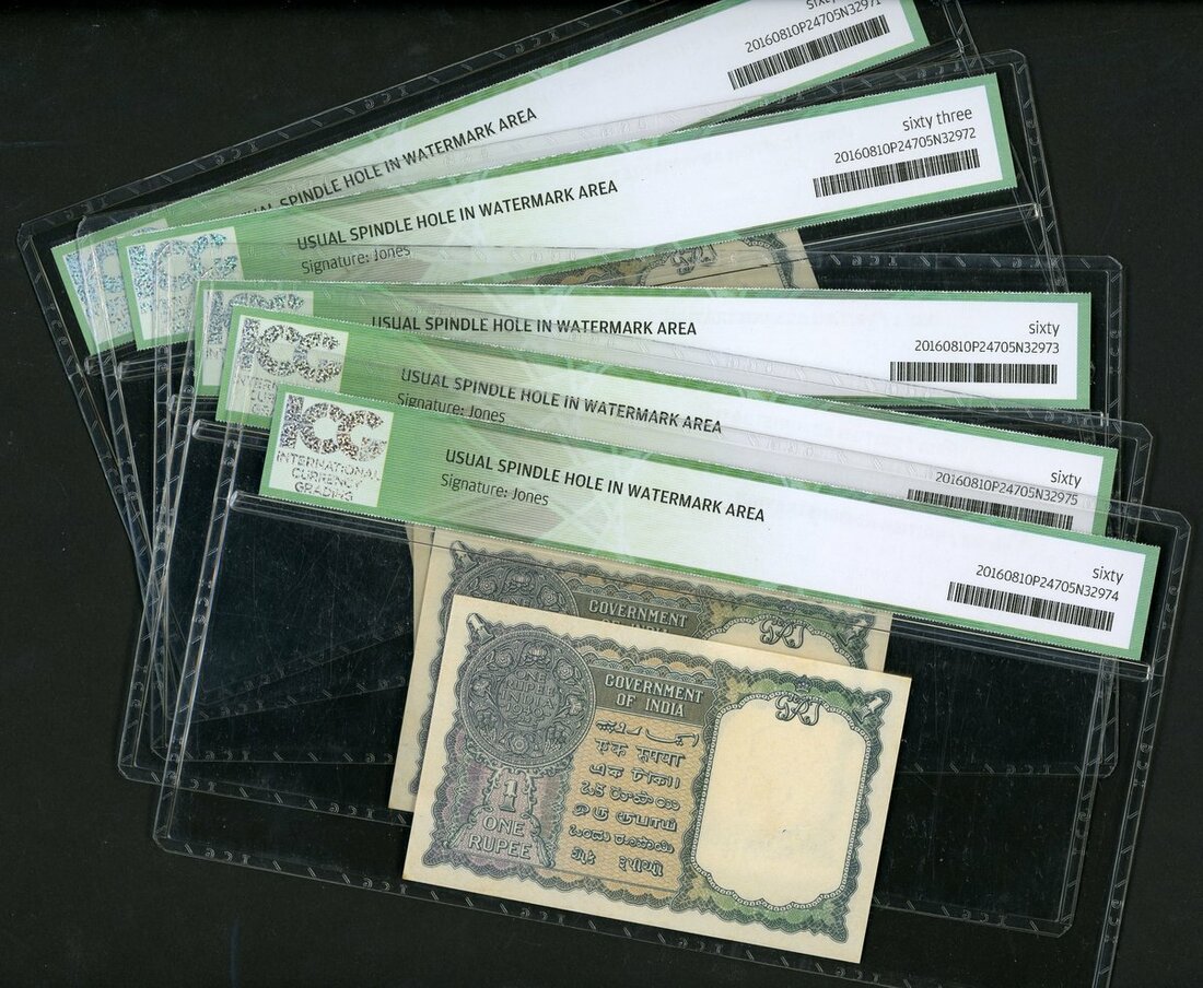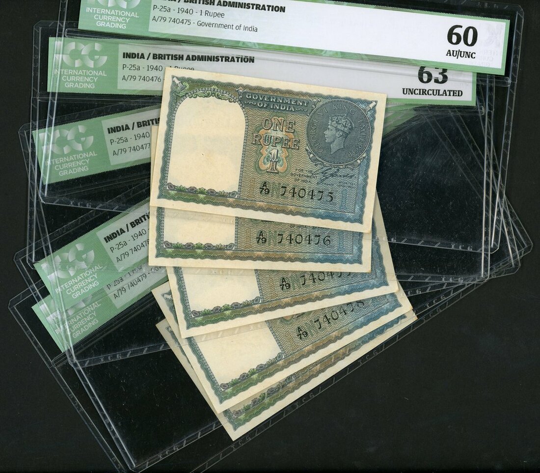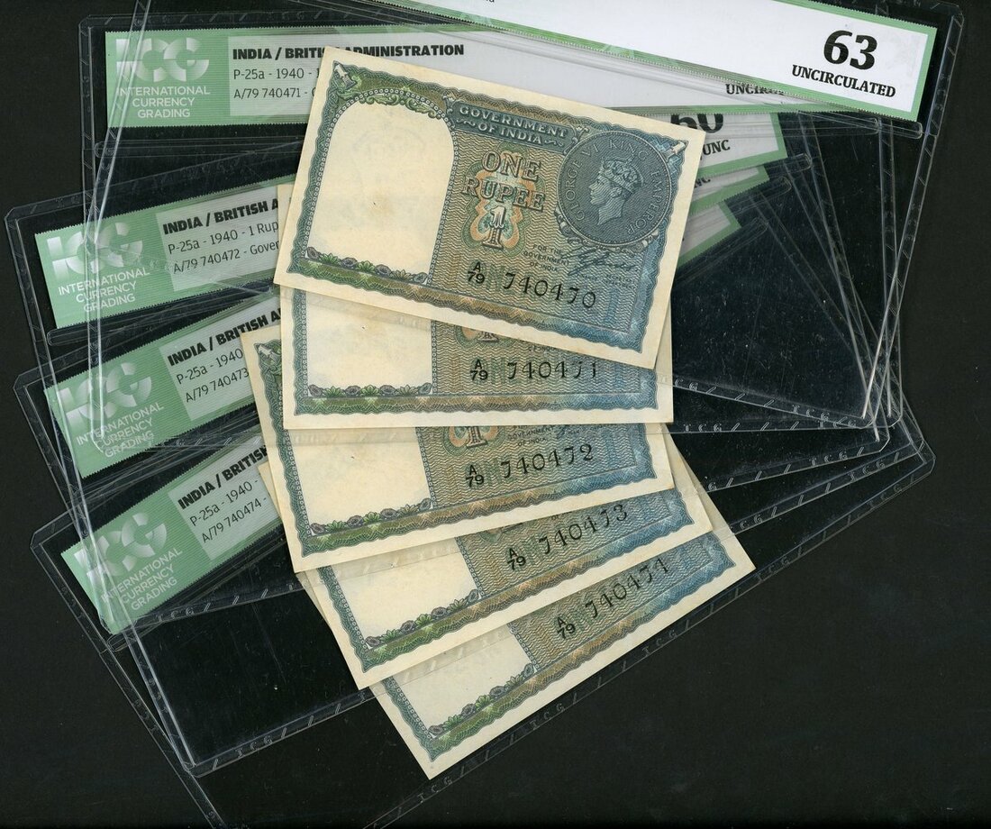Government of India, consecutive 1 rupee, 1940, serial number A79 740470-79, signed by Jones
