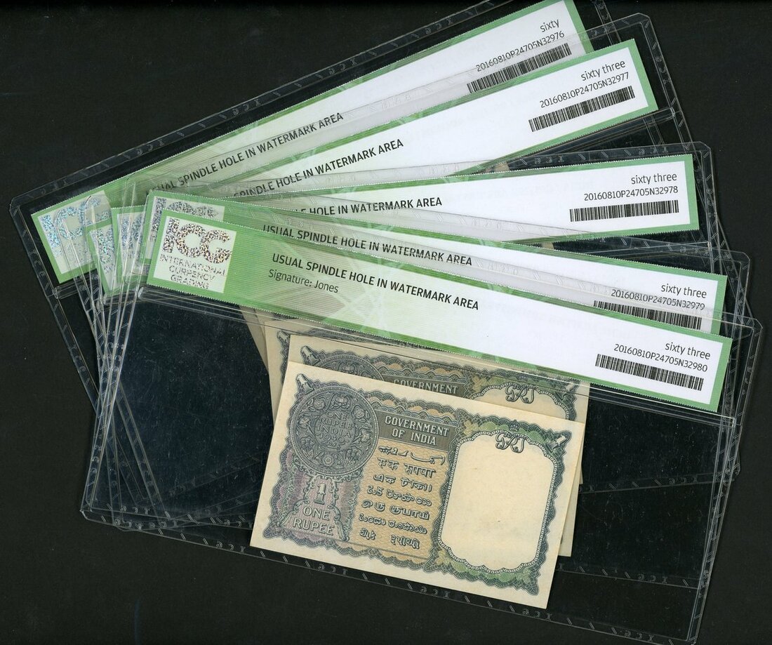 (Pick 25a, TBB B151a), in ICG holder, 63, 63, 60, 60, 60, 60, 63, 63, 63, 63 (10 notes)