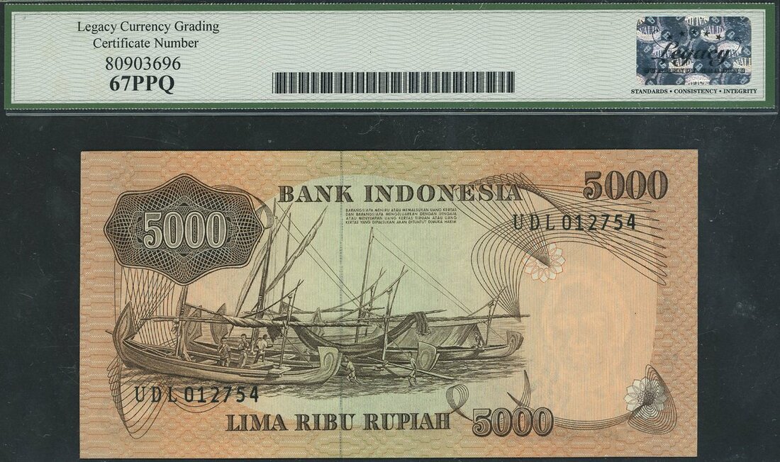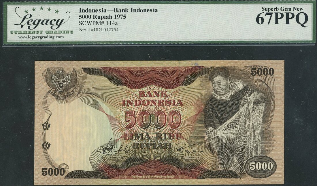 (x) Bank Indonesia, 5000 rupiah, 1975, brown, fisherman at right