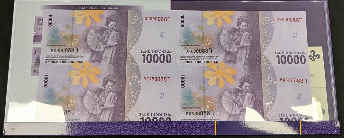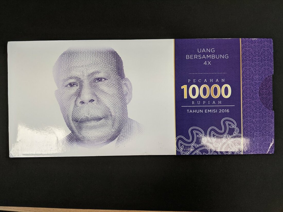 Indonesia, uncut sheet of 4, 10,000 rupiah 2016, (Pick 157), in a commemorative envelope