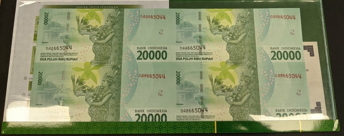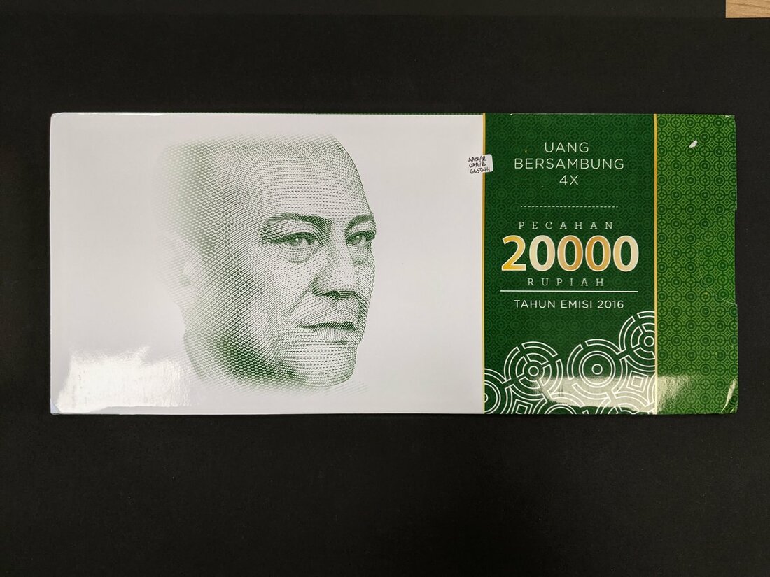Indonesia, uncut sheet of 4, 20,000 rupiah 2016, (Pick 158), in a commemorative envelope