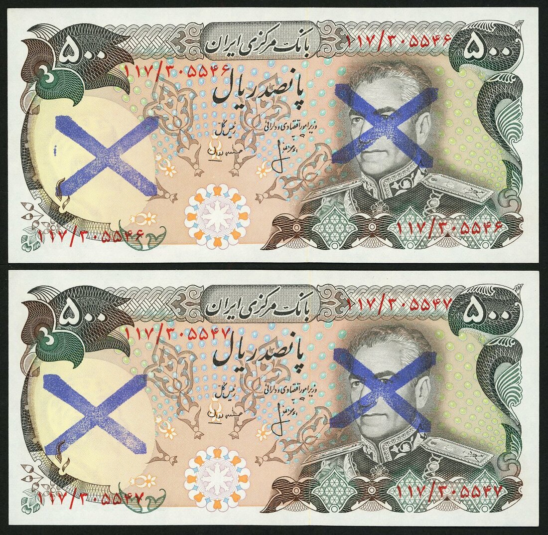 Bank Markazi Iran, 500 rials (2), black, Shah Pahlavi at right