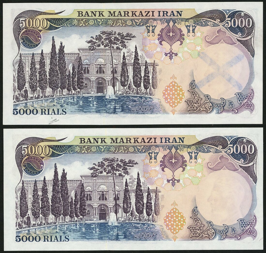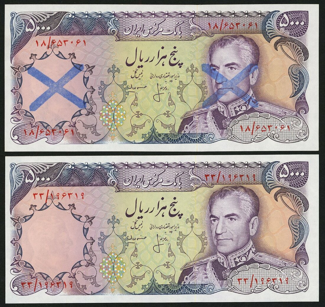 Bank Markazi Iran, 5000 rials (2), purple, Shah Pahlavi at right