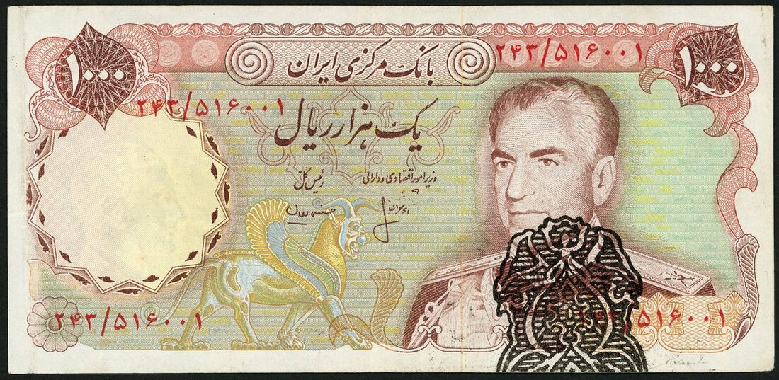 (x) Iran, error 1000 rials, ND (1974-79), signed by Hassan Ali Mehran and Hooshang Ansar