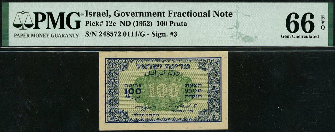 (x) Government fractional issue, Israel, 100 pruta, ND (1952), serial number 248572, blue and green