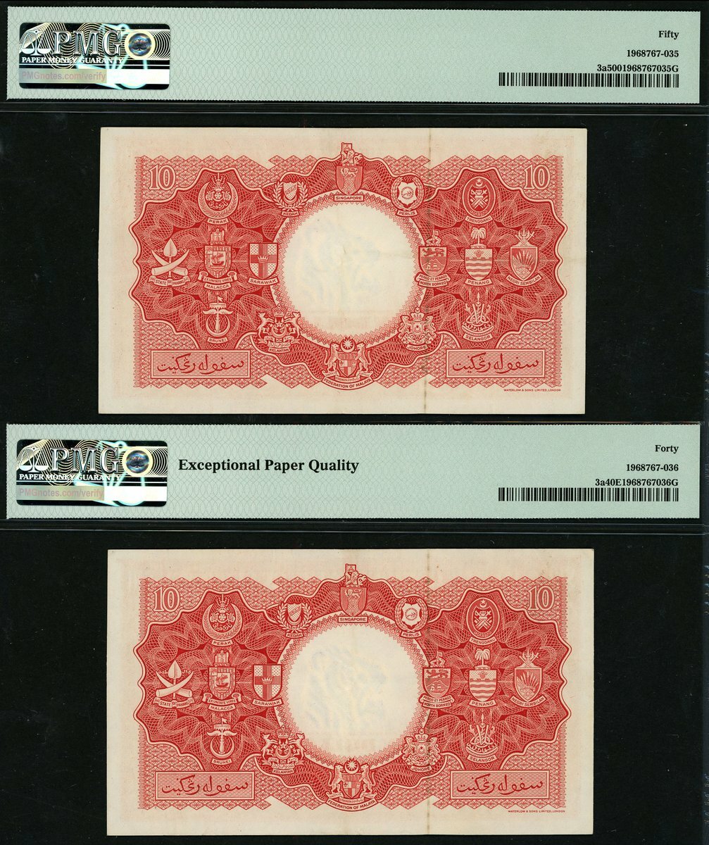 (Pick 3a), in PMG holder 50 About Uncirculated, 40 EPQ Extremely Fine (2 notes)