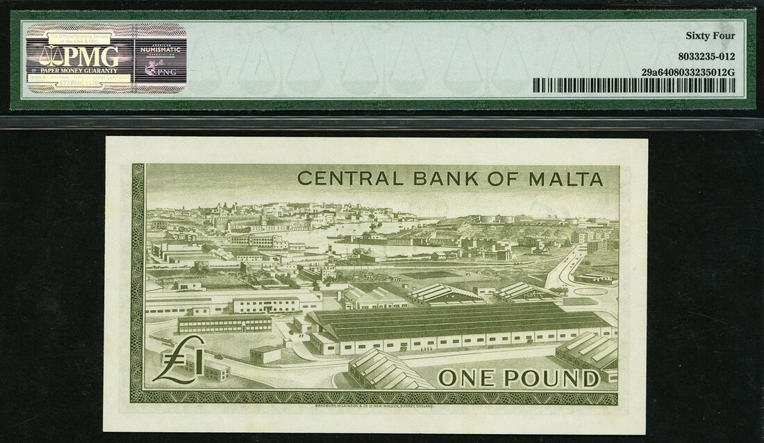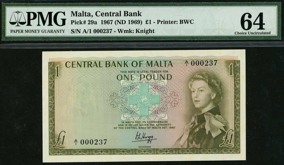 (x) Central Bank of Malta, £1, 1967 (ND 1969), serial number A/1 000237, (Pick 29a, TBB B202), in PMG holder 64 Choice Uncirculated