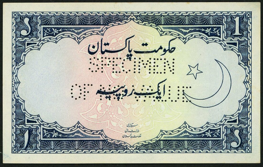 (x) Government of Pakistan, specimen 1 rupee, ND (1953-61), (Pick 9s), perforated, minor handling, about uncirculated