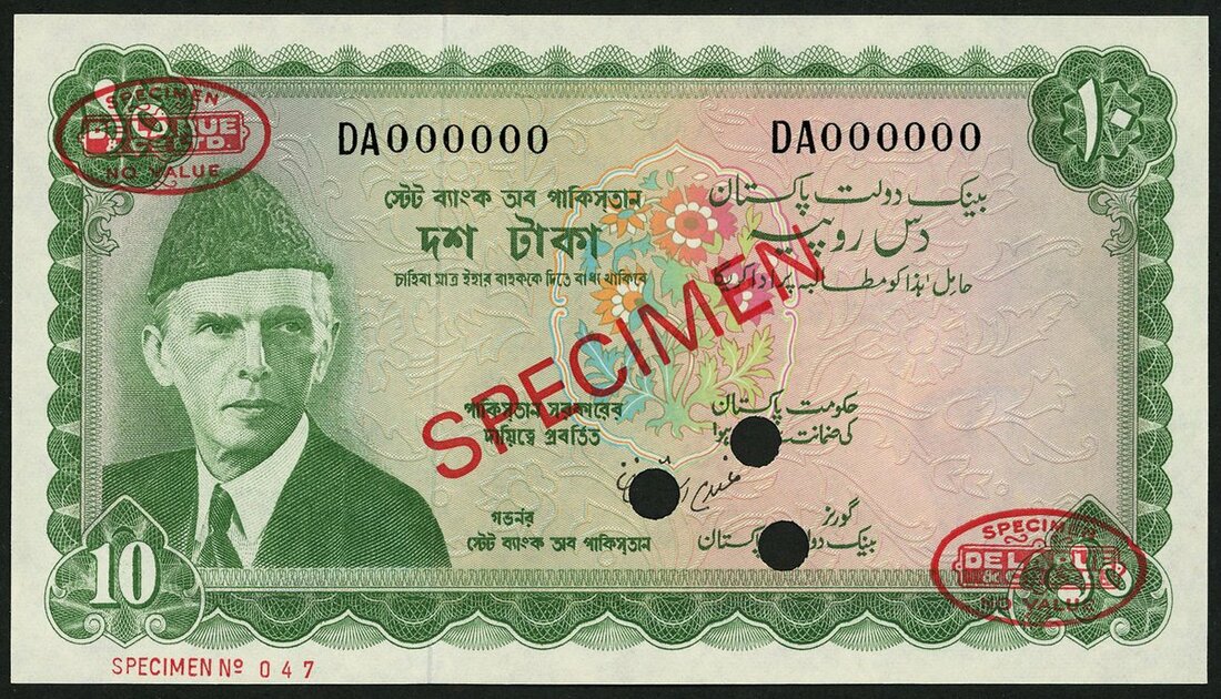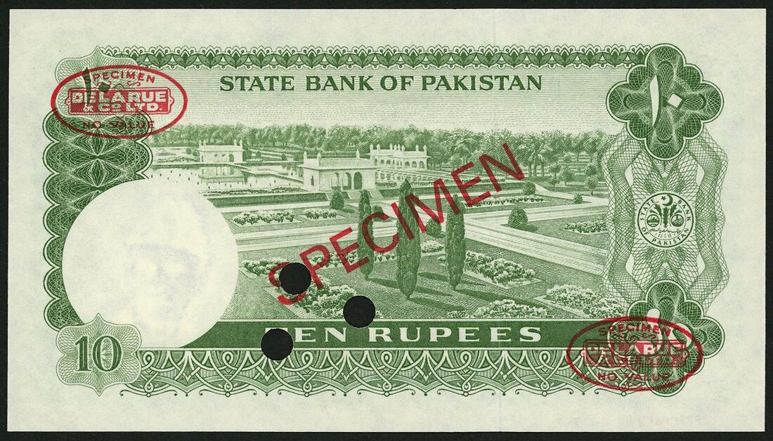 State Bank of Pakistan, specimen 10 rupees, ND (1972), (Pick 21s, TBB B211s), Uncirculated, scarce