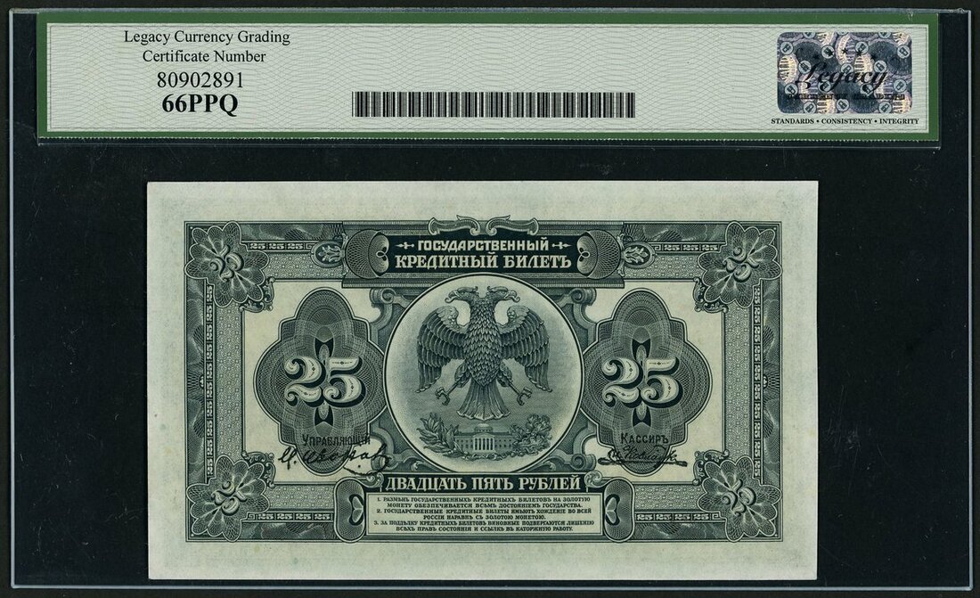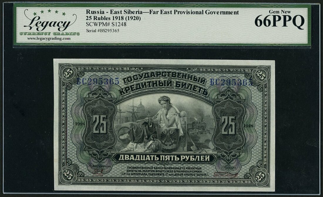 (x) Russia East Siberia, 25 rubles, 1918, (1920), (Pick S1248), in Legacy holder 66 PPQ Gem New