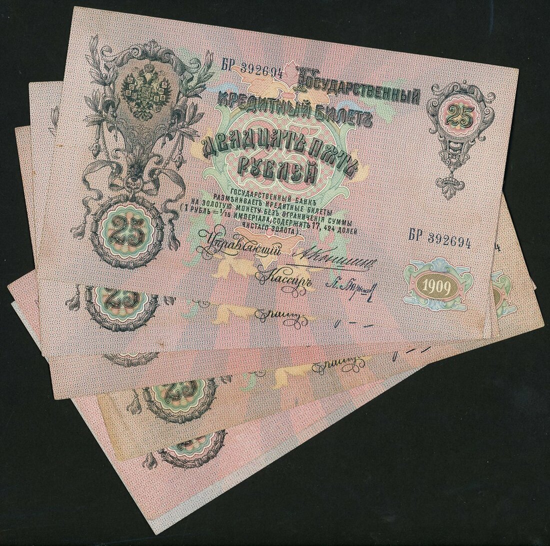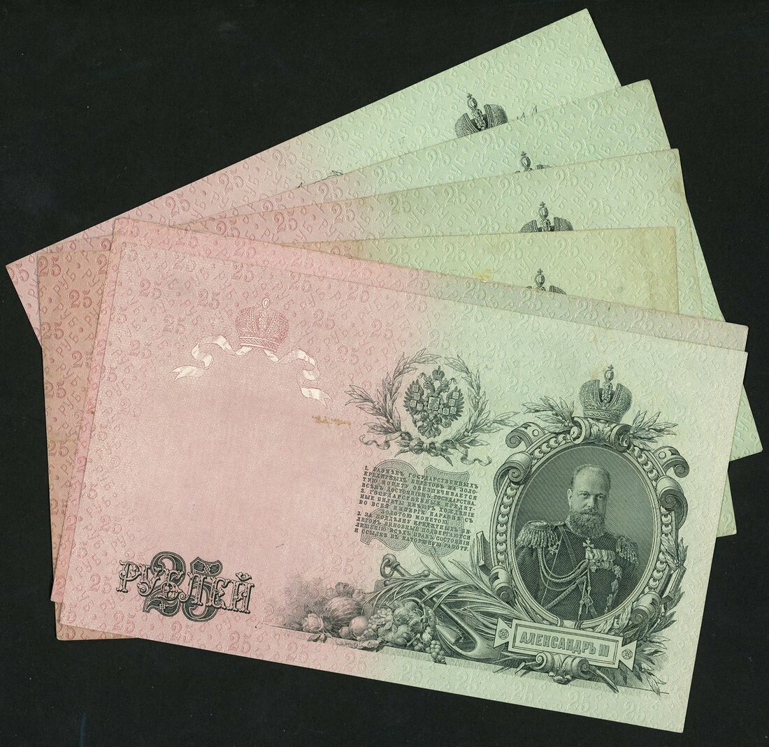 Russia, Credit State Notes, 25 rubles (6), 1909, (Pick 12a, 12b), very fine to about uncirculated