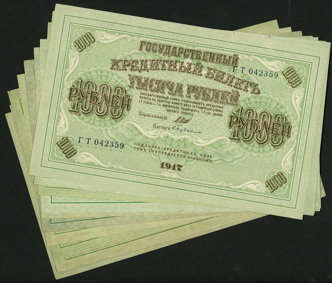 Provisional Government Credit and treasury notes, 20 rubley (11), 40 rubley (16), 1000 rubley (10) 1917, (Pick 37, Ryabch 810), about extremely fine to about uncirculated (37 notes)