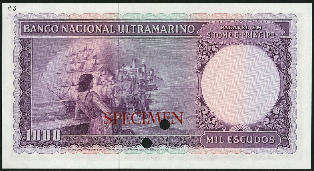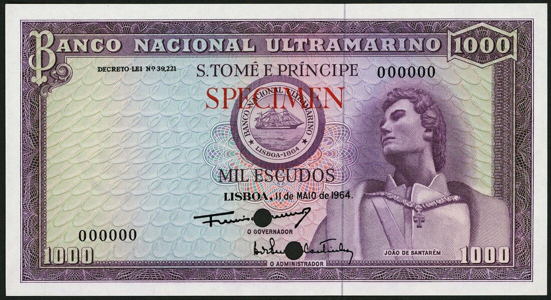 Banco Nacional Ultramarino (St Thomas and Prince), Colour Trial Specimen 1000 escudos, 1 May 1964, (Pick 48cts, TBB B207cts), Uncirculated, scarce