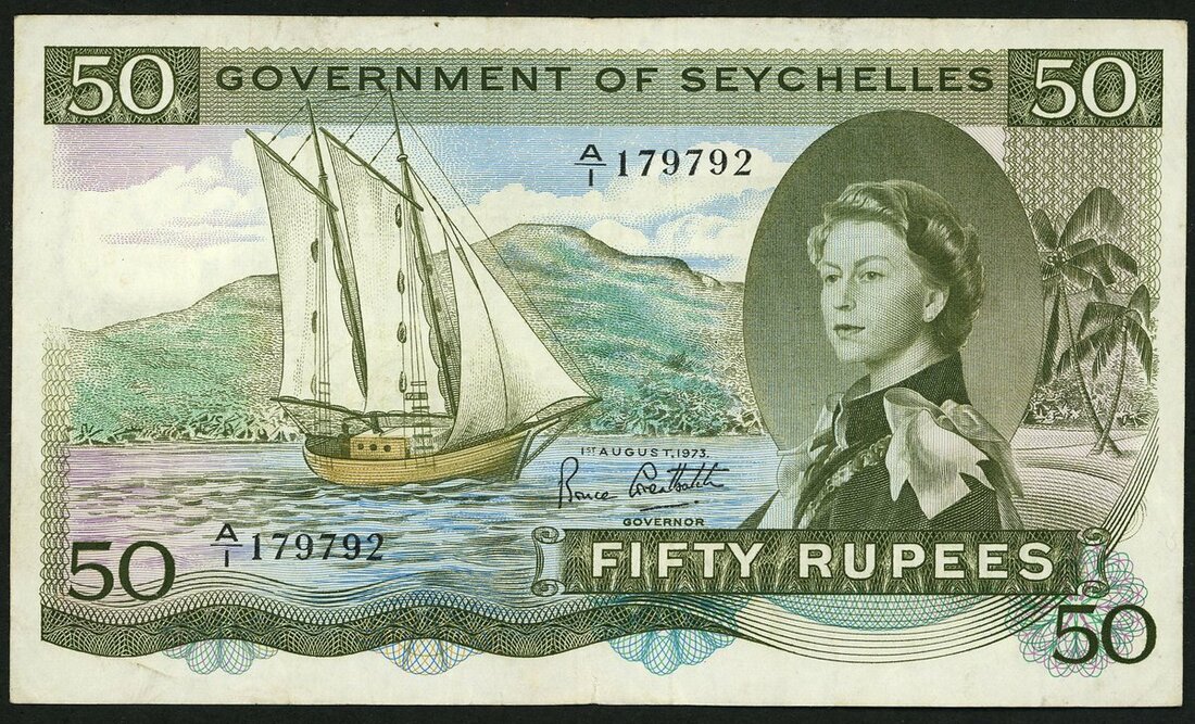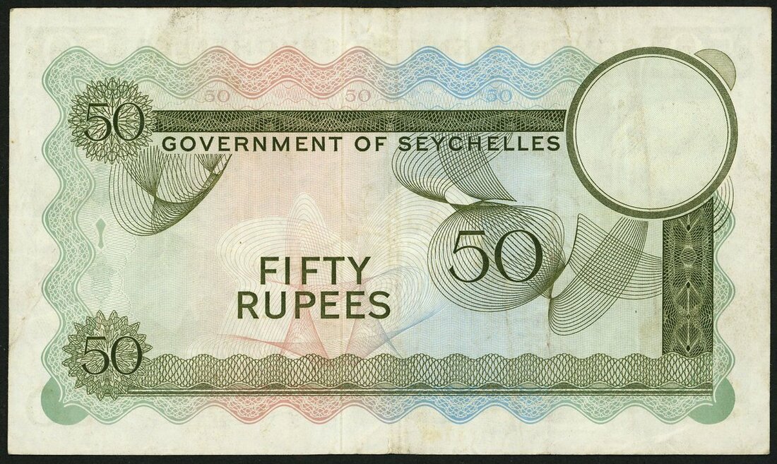 Government of Seychelles, 50 rupees, 1 August 1973, serial number A/1 179792, (Pick 17e, TBB B124e), minor split at lower margin, very fine