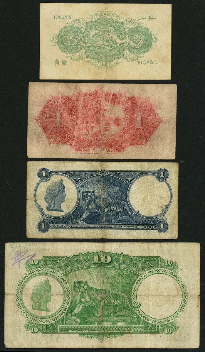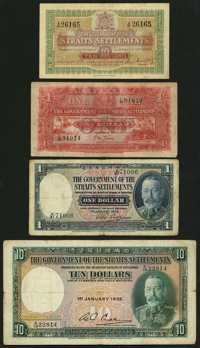 Government of the Straits Settlements, 10 cents, 1919, $1, 1927, $1, 1935 and $10, 1935