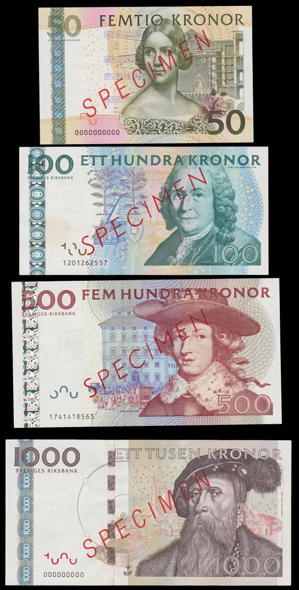 (x) Sveriges Riksbank, Sweden, a set of specimen from the 2001-2014 issues, including 50, 100, 500 and 100 kronor,