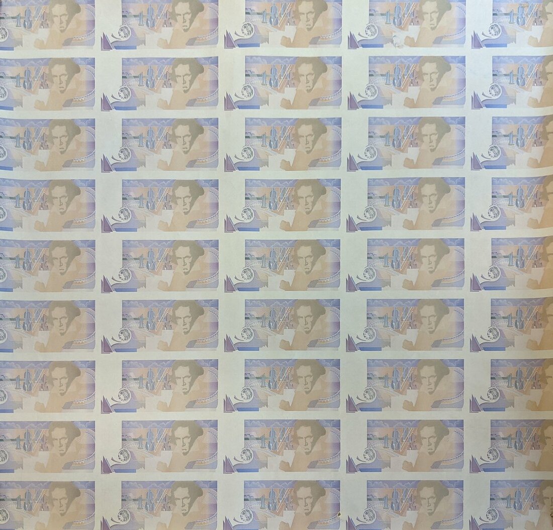 (x) De La Rue Giori S. A. Beethoven type, sheet of 45 progressive proof, some minor tears at margin, small hole at lower margin, extremely fine