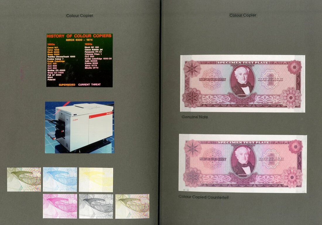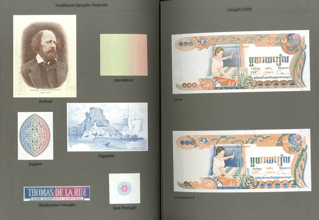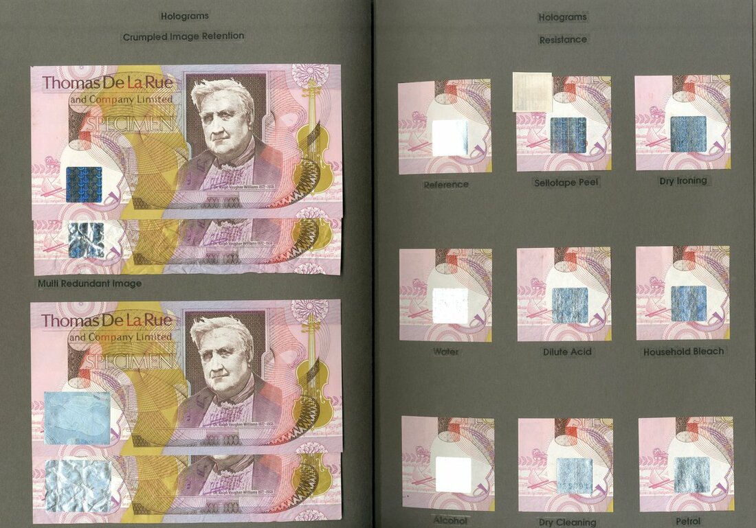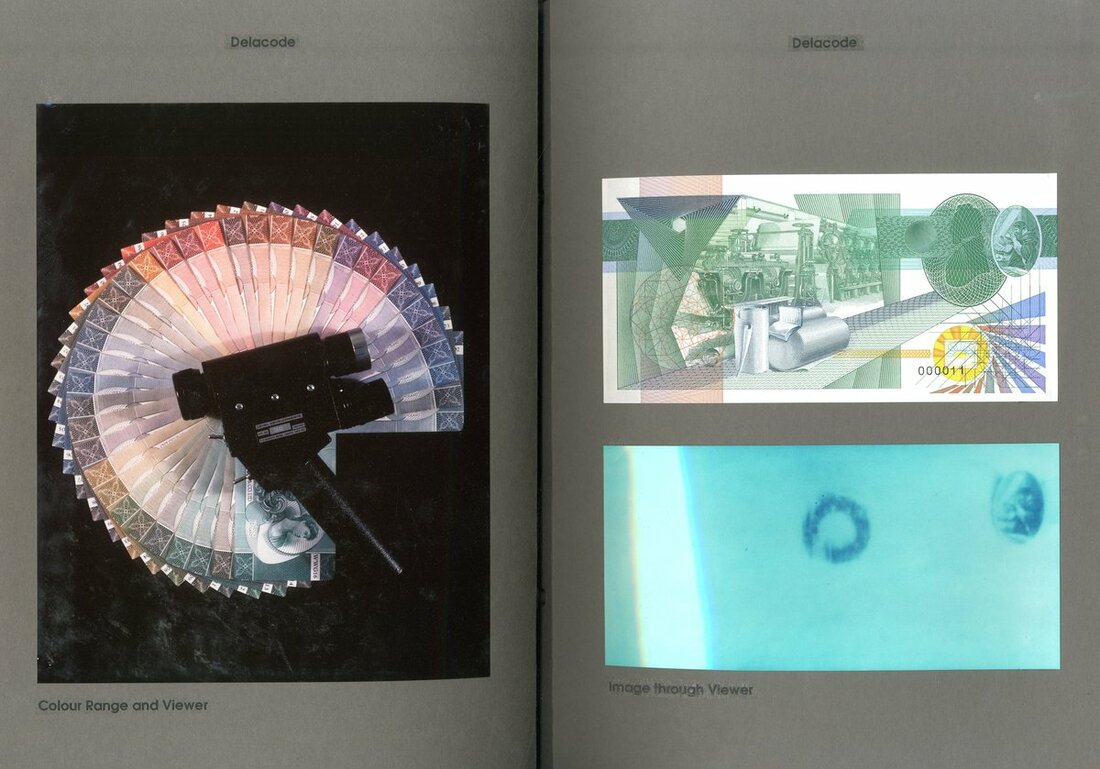 De la Rue, Special Anti-Counterfeit Features, 13 pages with samples of De La Rue security features and a number of house notes, ca.1992