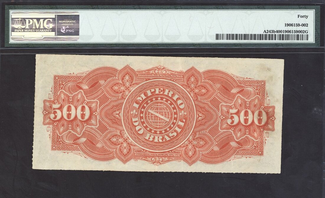 (x) Thesouro Nacional, Brazil, 500 reis, ND (1885), serial number 63A 84319, (Pick A243b), in PMG holder 40 Extremely Fine, scarce type in a presentable grade