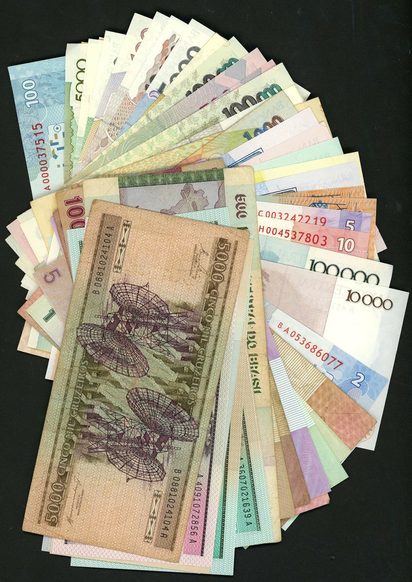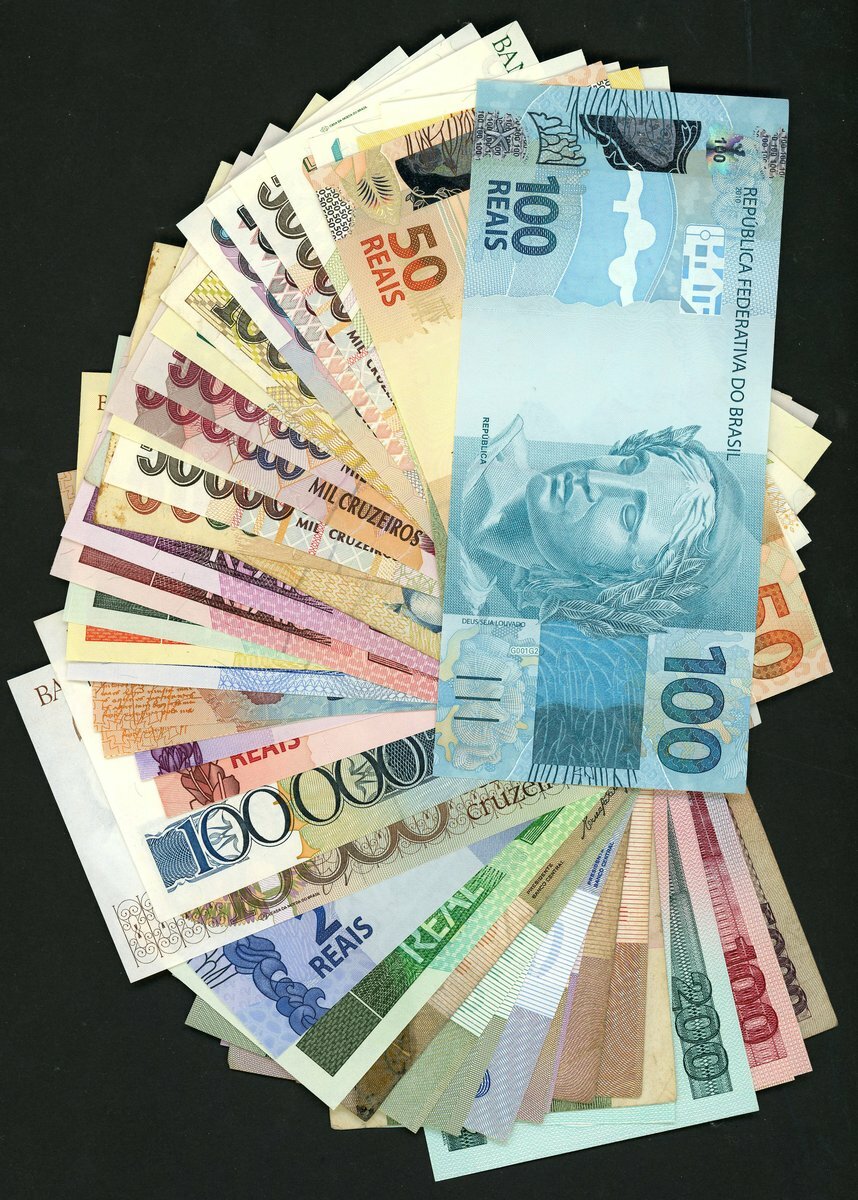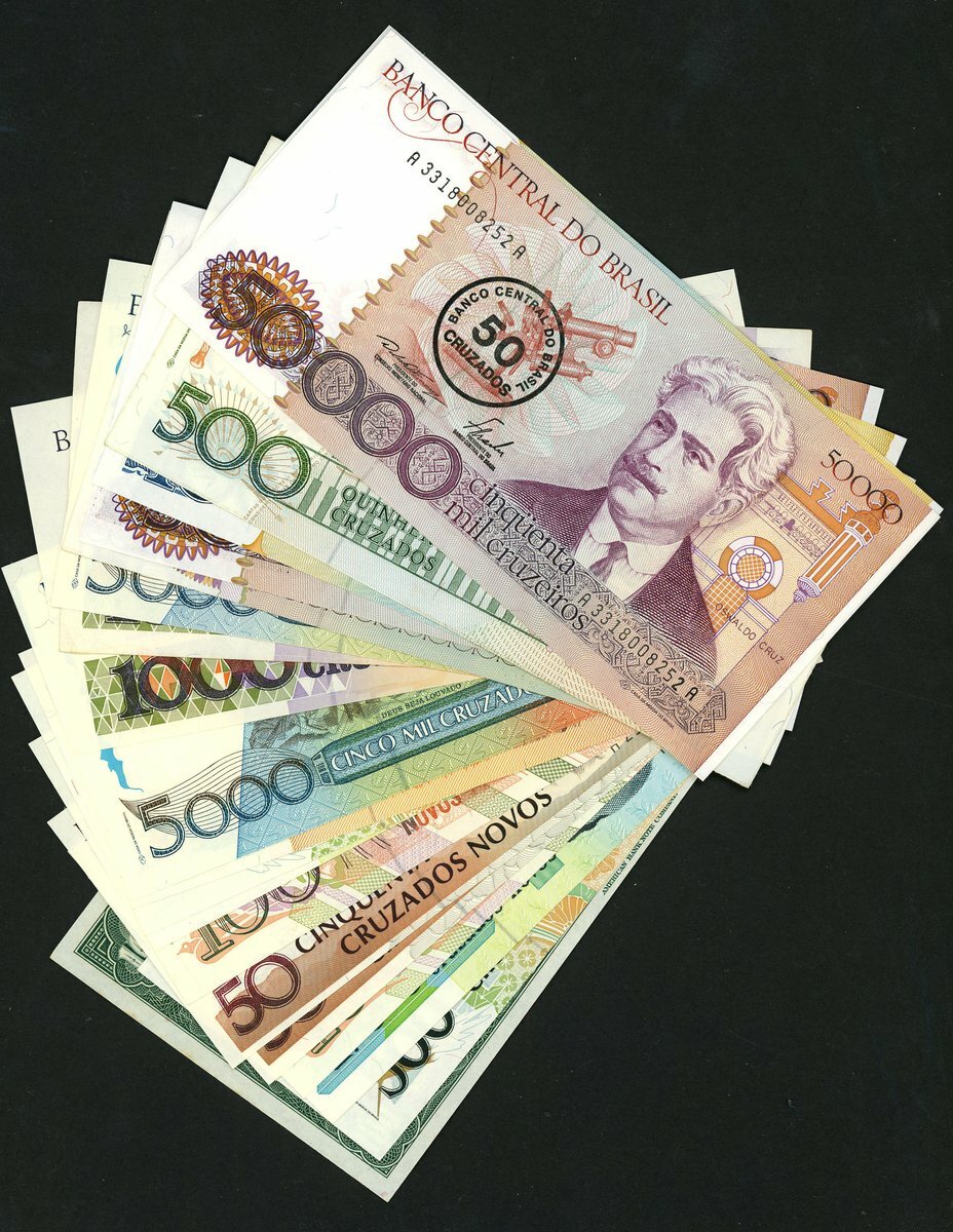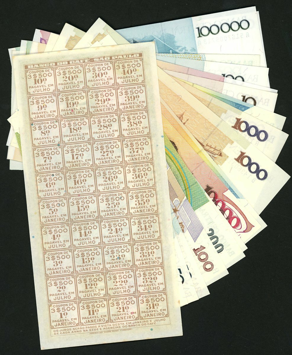 Republica dos Estados Unidos do Brasil, a selection of notes from 1970 onwards including a poor grade specimen 10 cruzeiros of 1970 and up to the issues of 2010 and a Banco do Cafe 100 mil reis