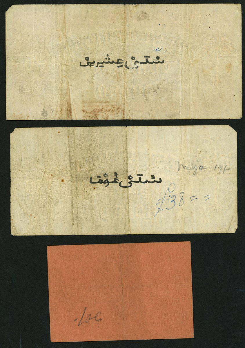 British West Africa, 1 shilling, 30 November 1918, prefix A/9, red-brown, 10 shillings, 1942, green and 20 shillings, 1937, red