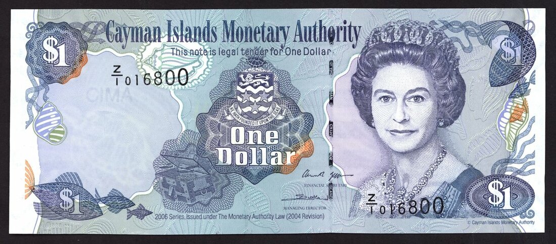 Cayman Islands Monetary Authority, replacement $1, 2006, serial number Z/1 016800, (Pick 33*, TBB B213az, MWR RA9), uncirculated