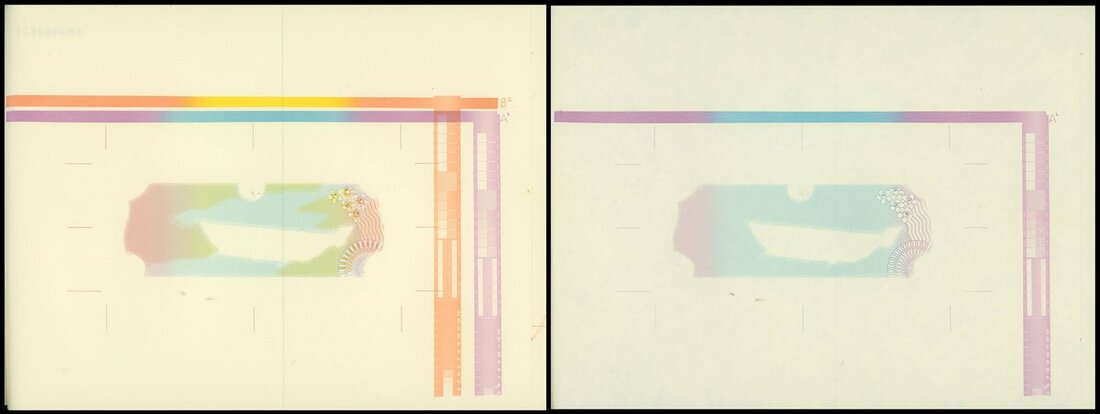 (Pick 131pp, TBB B649pp), booklets stapled together, obverse proof cut out and taped together. A fascinating group of printer's material. (17 items)