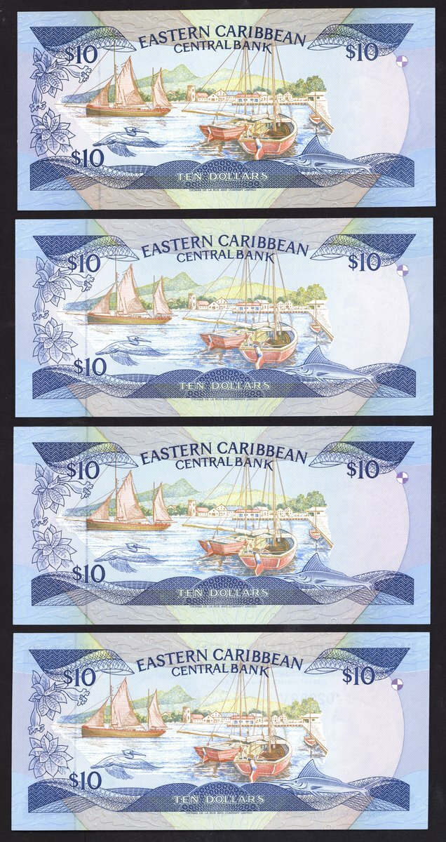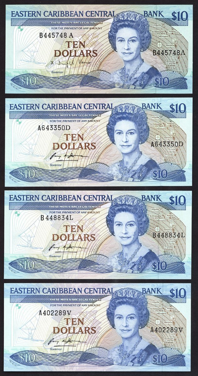 East Caribbean Central Bank, $10 (4), ND (1985-88), (Pick 23a2, d1, l1, v1), uncirculated (4 notes)