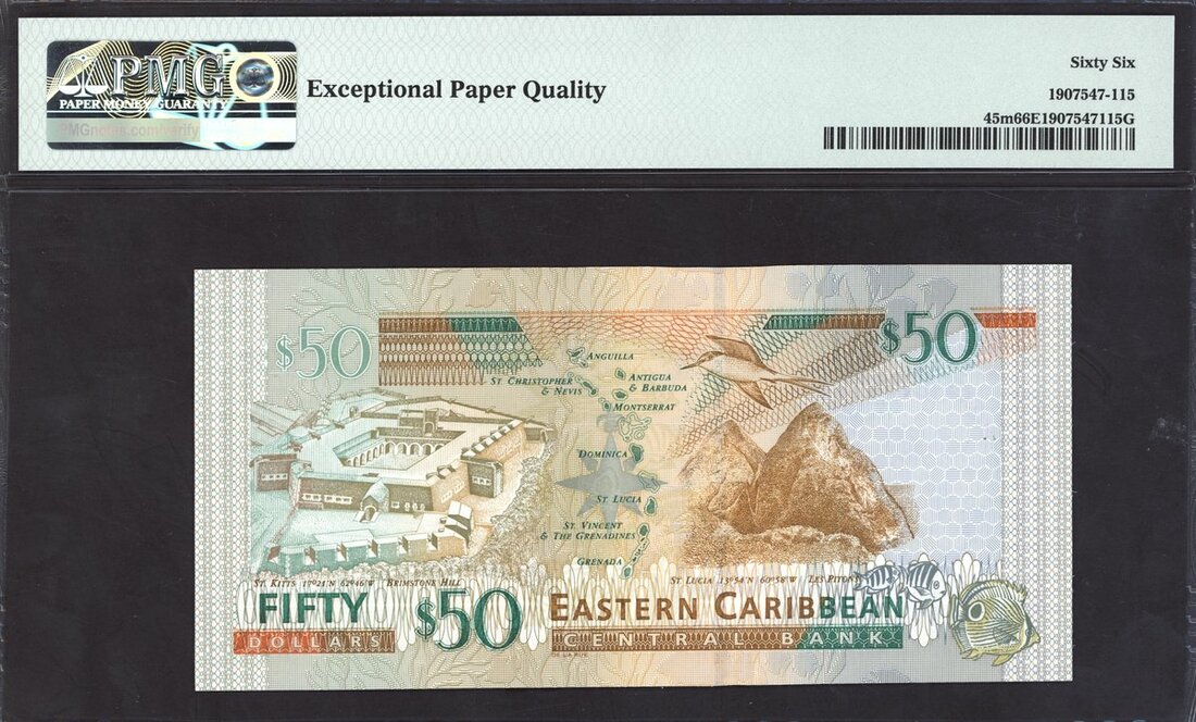 (x) East Caribbean States, 50 dollars, ND (2003), serial number A646182M, (Pick 45m), in PMG holder 66 EPQ Gem Uncirculated