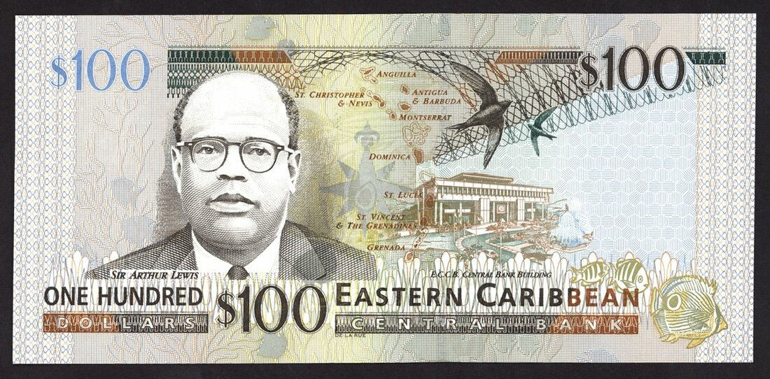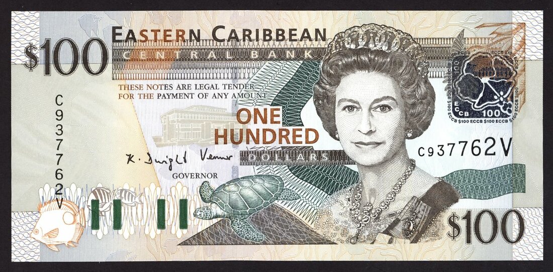 Eastern Caribbean Central Bank, Saint Vincent, $100, 2003, serial number C 937762 V, brown and green, Elizabeth II at right