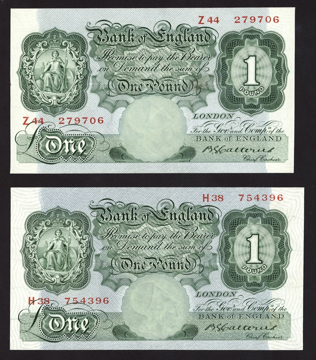 Bank of England, B.G. Catterns, £1 (2), ND (1930), prefix H38, Z44, (EPM B225), first and last series, both pressed extremely fine (2 notes)