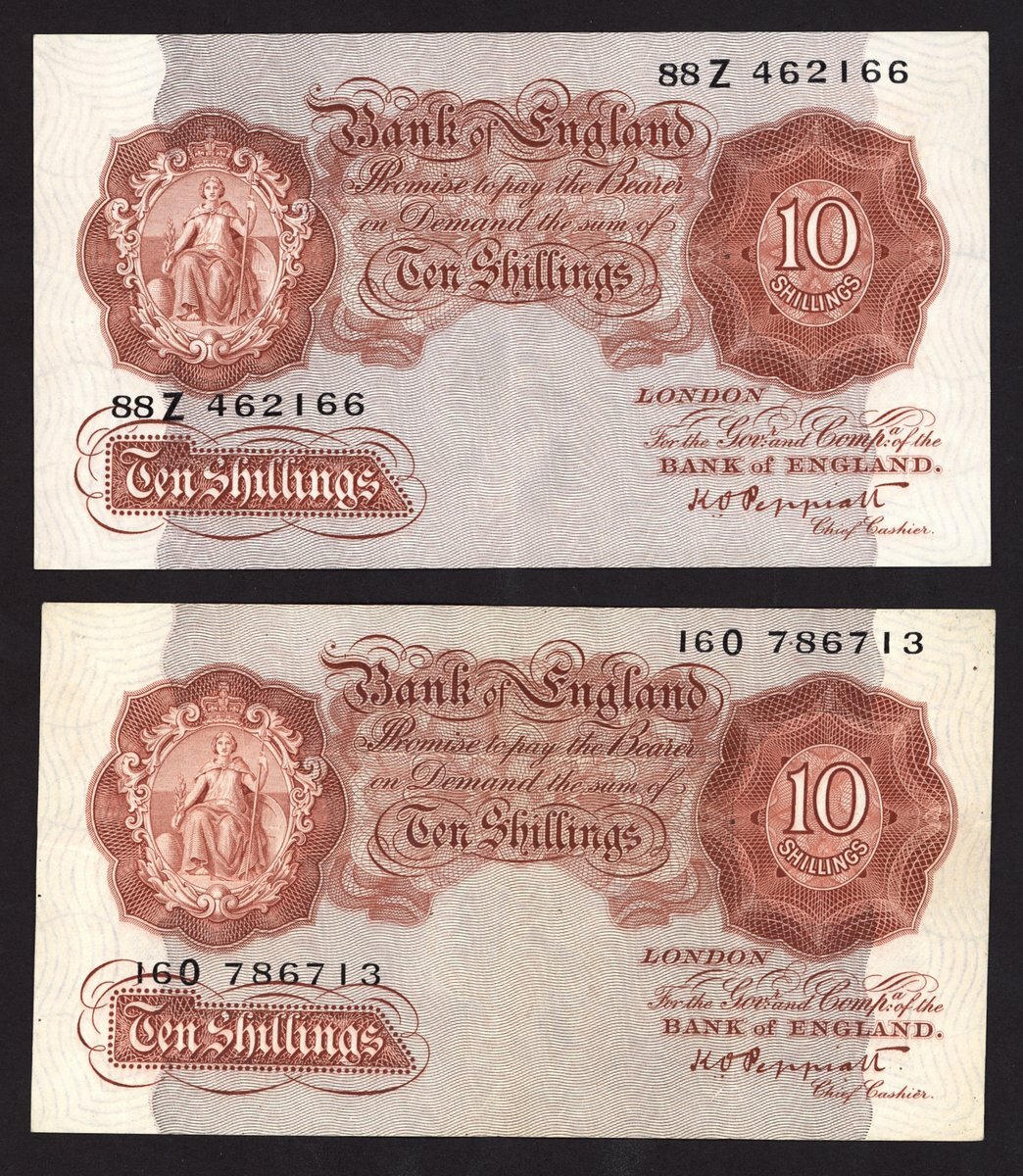 Bank of England, K.O. Peppiatt, 10 shillings (2), ND (1934), prefixes 88Z, 16O, (EPM B236), first and last series, extremely fine and very fine respectively (2 notes)