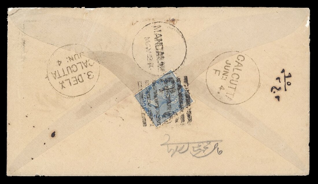 c.1878 envelope to Calcutta bearing, on reverse, ½a. Die II tied by