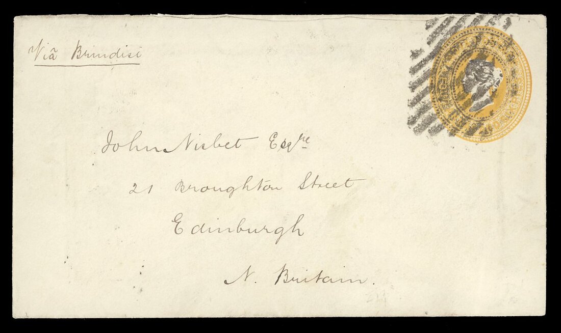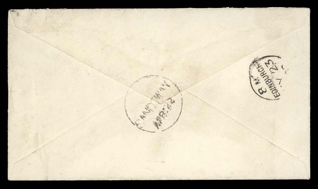 1880 (22 Apr.) 4½a. stationery envelope to Edinburgh, cancelled by diamond of bars (Type K4) and showing, on reverse,