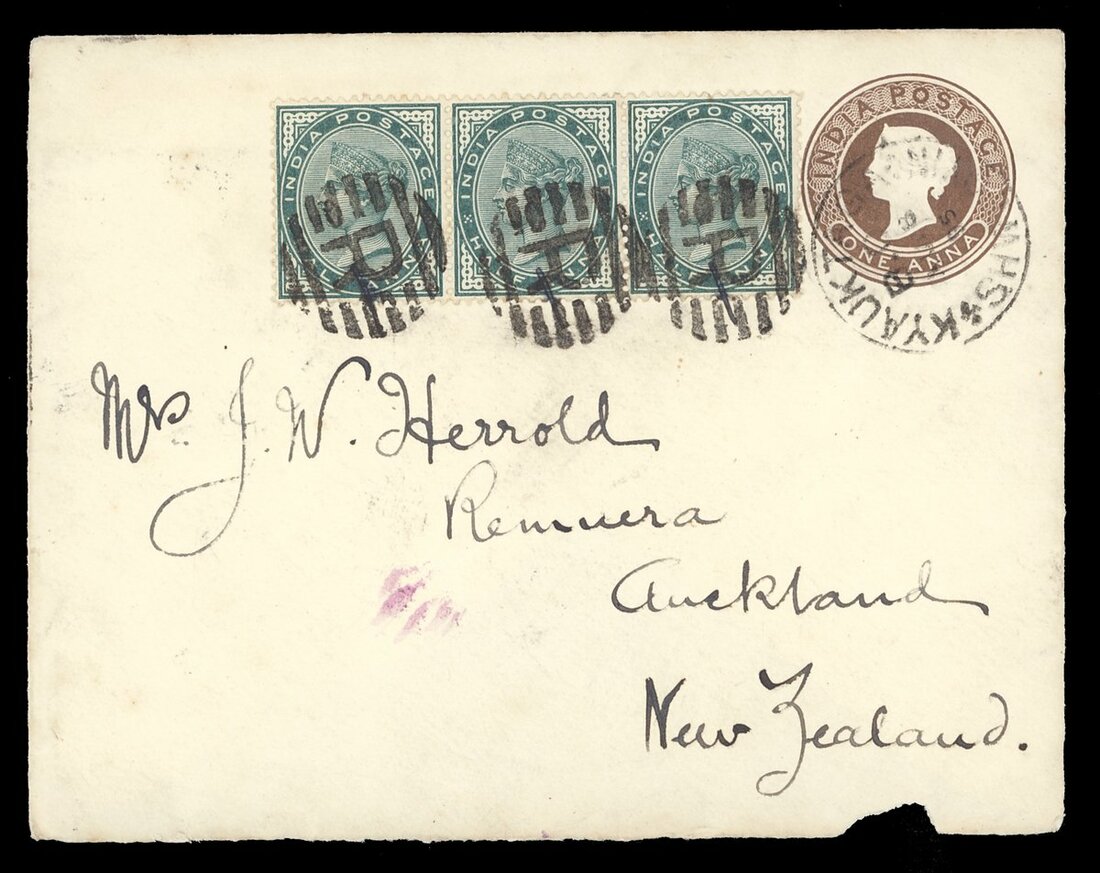 1895 (8 Aug.) 1a. stationery envelope to New Zealand cancelled by