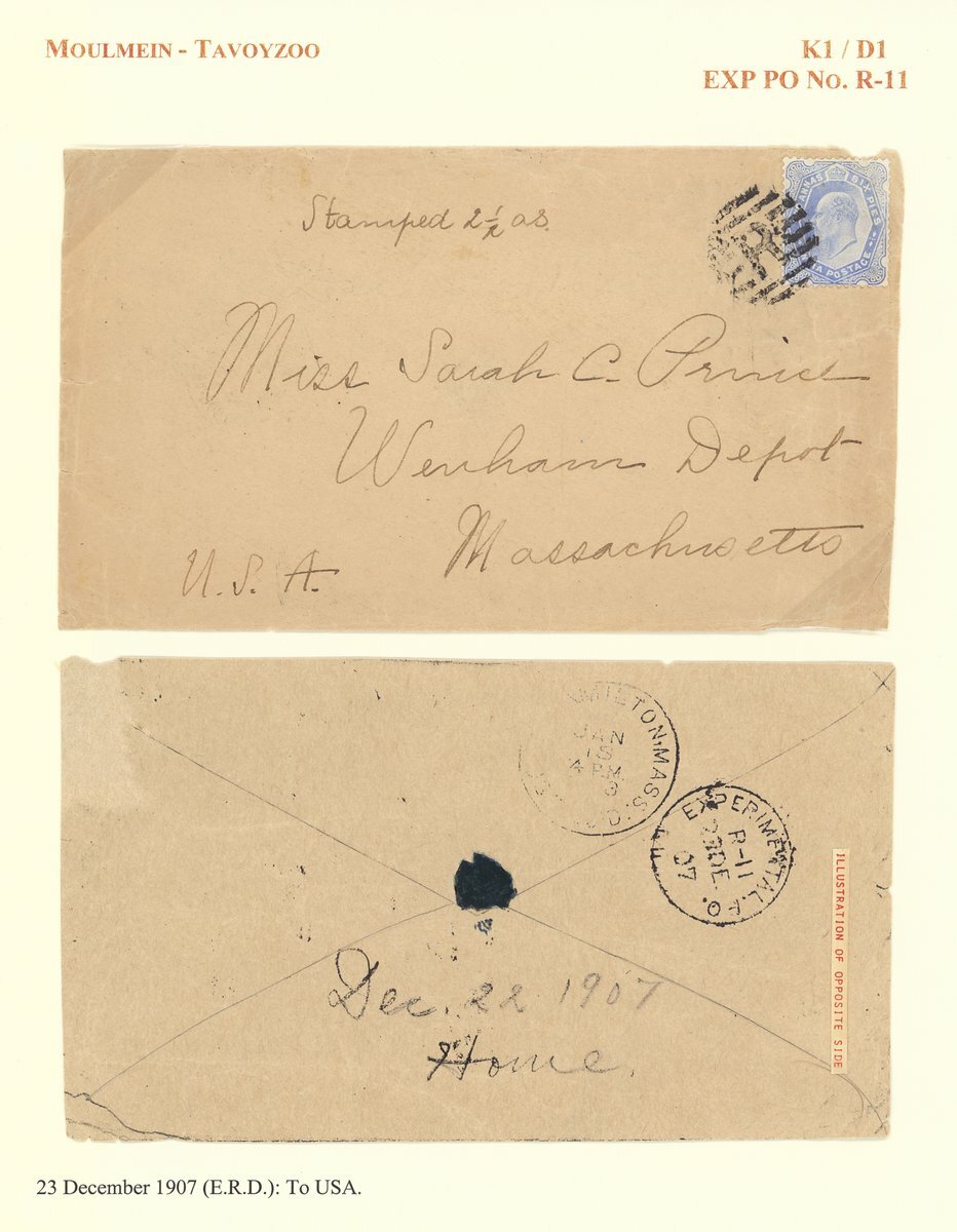 1907 (23 Dec.) envelope to USA, bearing 2½a. tied by