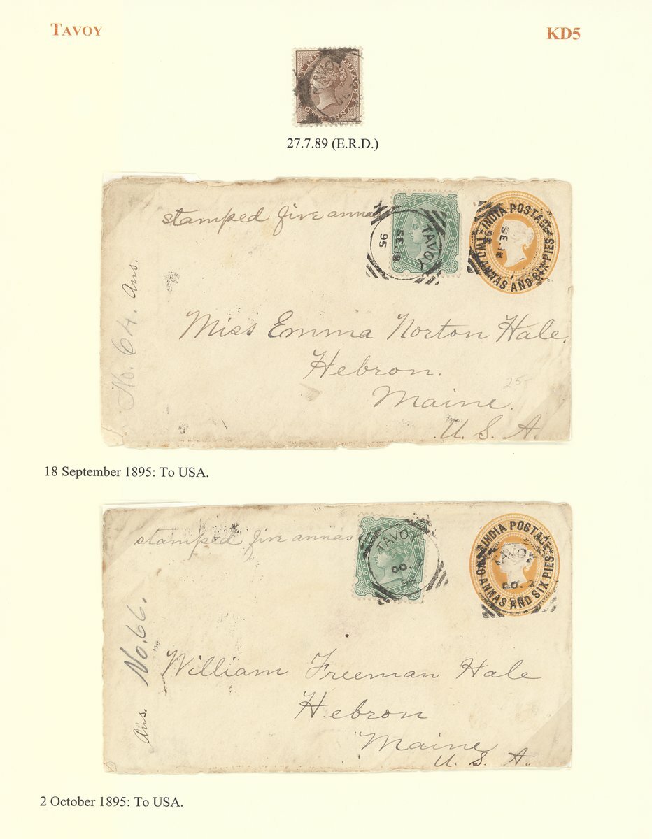1895 (18 Sept.) and (2 Oct.) 2½a. stationery envelopes from the same correspondence to USA, both uprated with 2½a., cancelled by