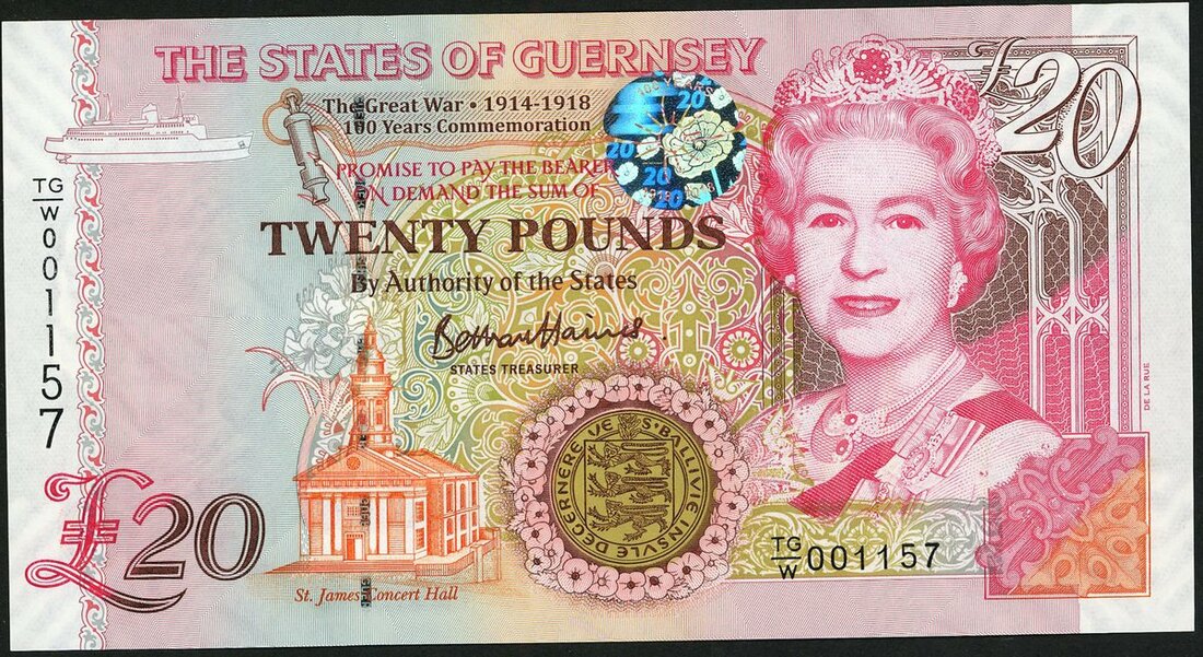 The States of Guernsey, £20, ND 1996, serial number TG/W 001157, (Pick 58c), minor handling at upper right, otherwise uncirculated
