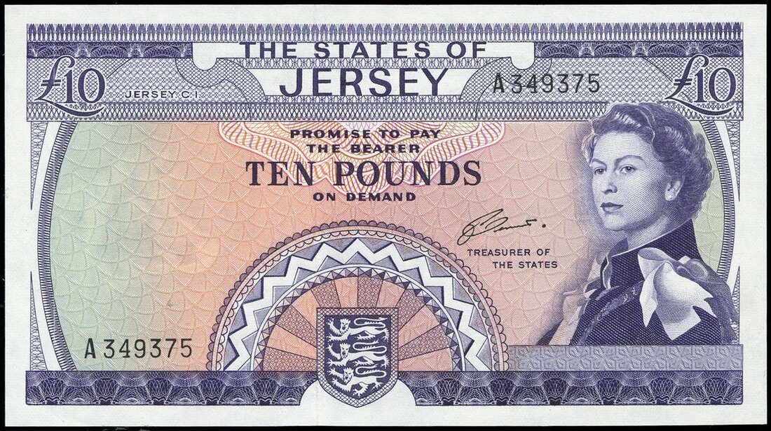 (x) States of Jersey, £10, ND (1971), serial number A349375, (Pick 10, TBB B110), uncirculated