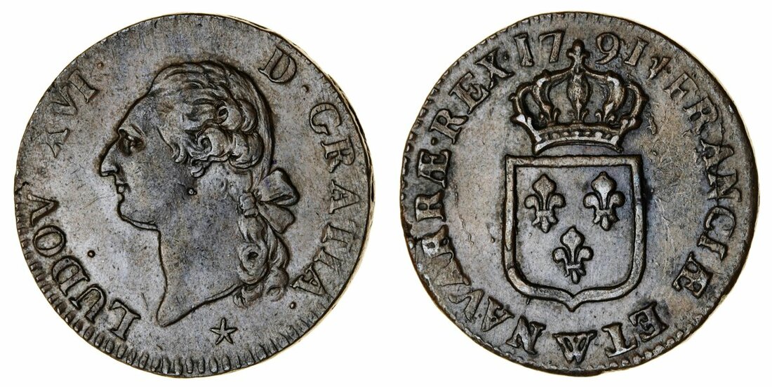 France, Kingdom {Bourbon}, Louis XVI (1774-93), Sol à l'écu, 1791-W, Lille (Duplessy 1714; Gad 350; KM 578.16), very fine