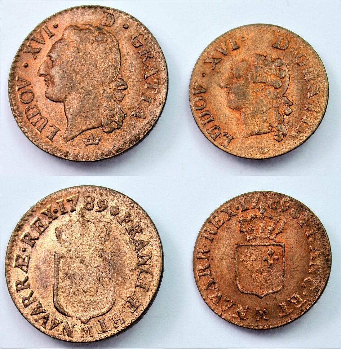 France, Kingdom {Bourbon}, Louis XVI (1774-93), Demi-Sol, 1789-M, Toulouse (Duplessy 1715; Ciani 2196; Gad 349); another, Liard, 1789-M, Toulouse (Duplessy 1716; KM 585.10), full mint red, much as struck, albeit with worn dies [2]