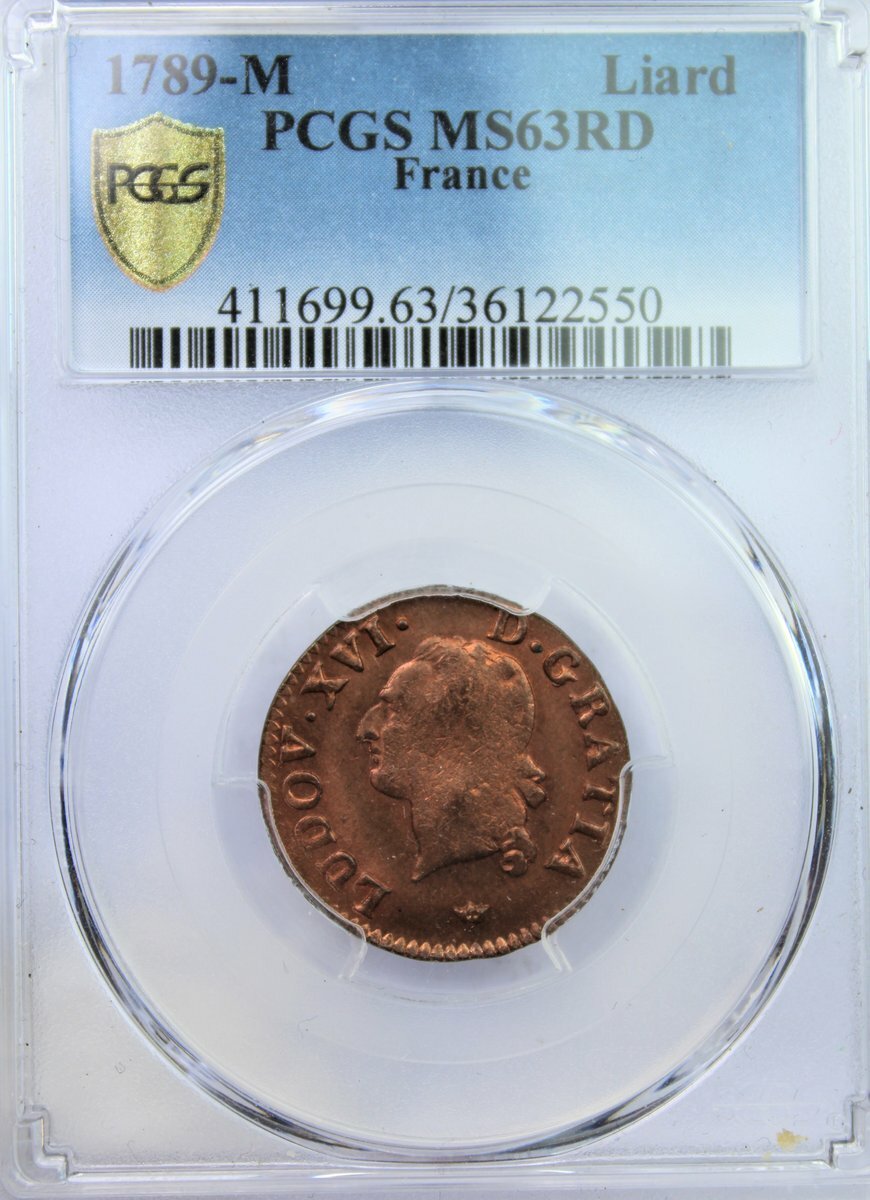 France, Kingdom {Bourbon}, Louis XVI (1774-93), Liard à l'écu, 1789-M, Toulouse (Duplessy 1716; KM 585.10), full mint colour, much as struck, albeit from worn dies, in PCGS holder, MS63RD