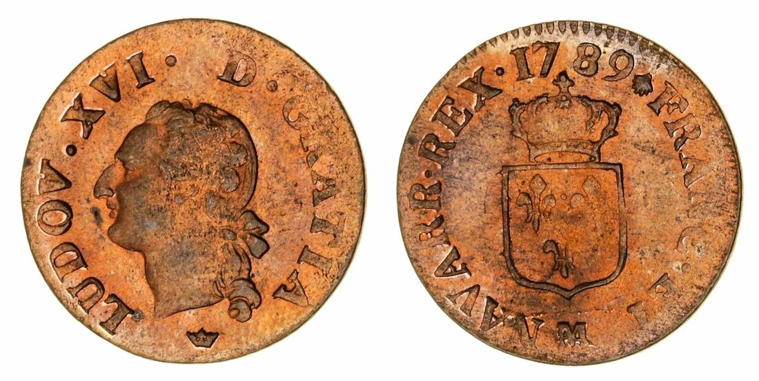 France, Kingdom {Bourbon}, Louis XVI (1774-93), Liard à l’écu, 1789-M, Toulouse (Droulers 822; Duplessy 1711; Gad 348) some peripheral striking weakness, otherwise full mint red colour and as issued
