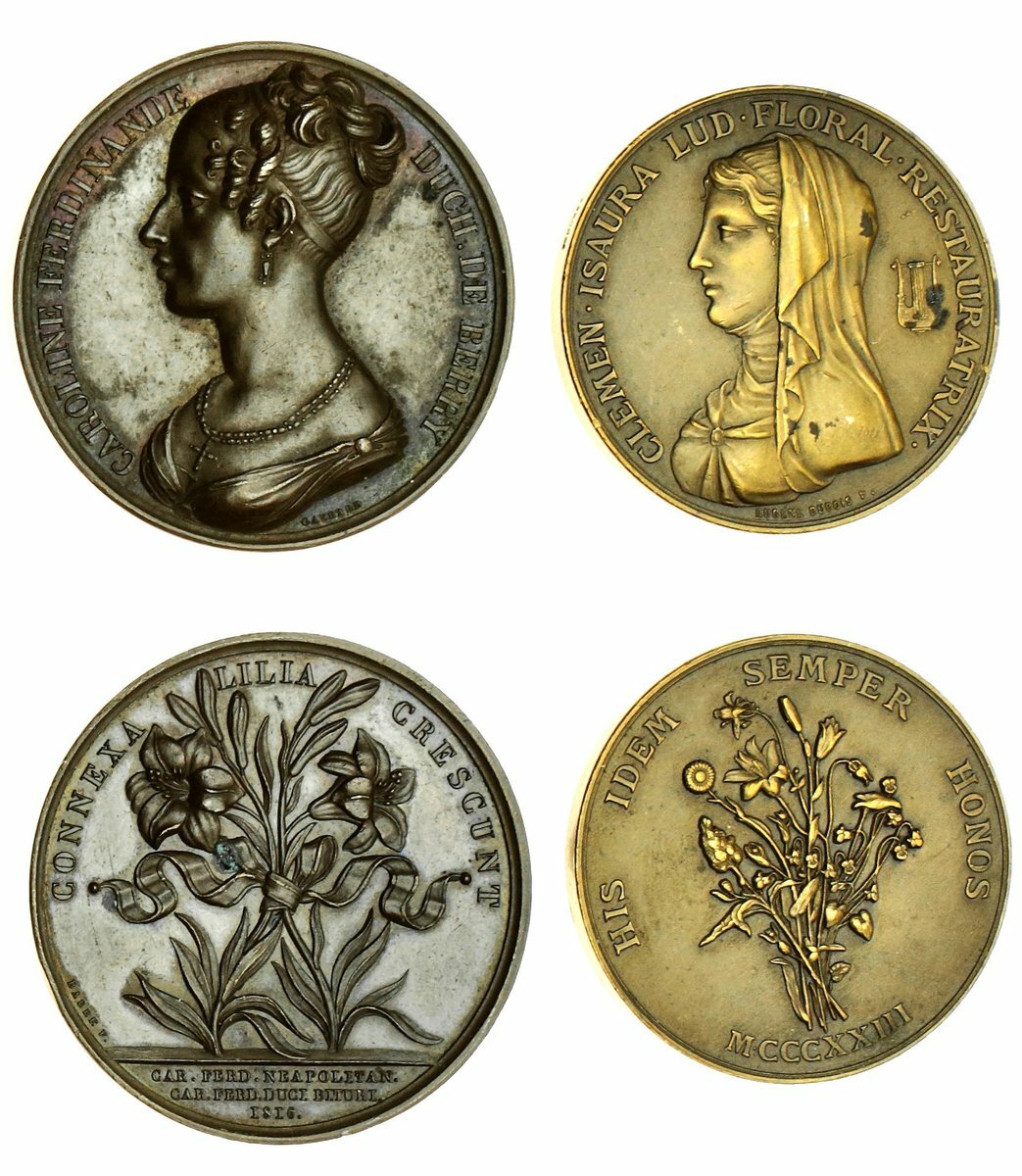 France, AE Medals [2], Marie-Caroline, Duchess of Berry, 1816; another, Clemen Isaura Lud. Floral Restauratrix, 1819, very fine or marginally better (2)