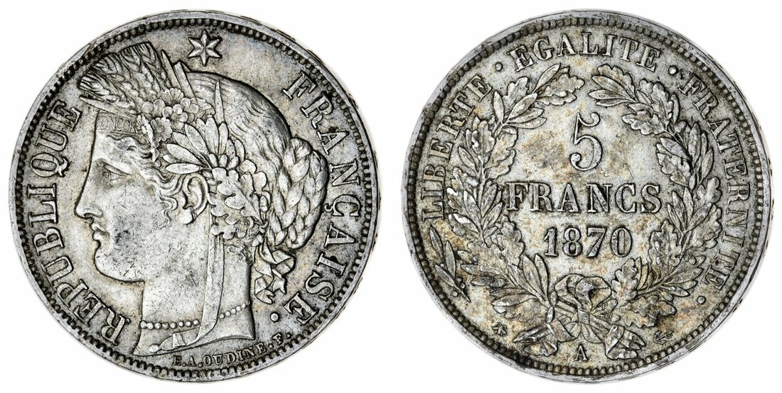 France, Third Republic (1870-1940), 5-Francs, 1870-A, Paris {bee-anchor}, rev. with outer legend (Le Franc 333.1; Gad 743; KM 819), toned, very fine, a one year type