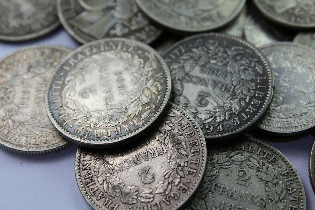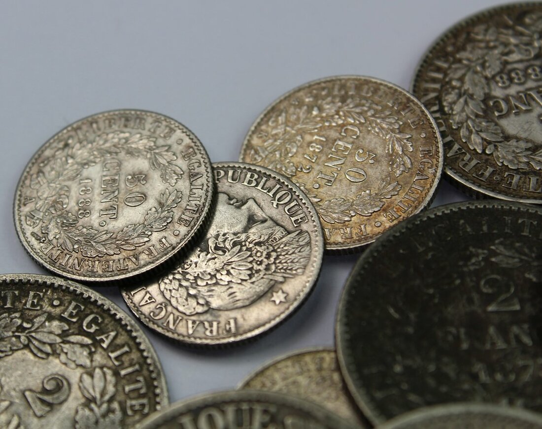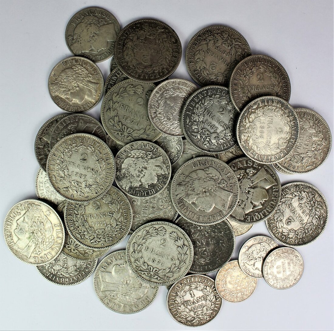 France, Third Republic (1870-1940), 2-Francs [22], Paris [18], including, 1870-A {2}; 1871-A {3}; 1872-A; 1873-A {2}; 1881-A; 1887-A {2}; one a counterfeit; 1888-A {2}; 1894-A {2}; 1895-A {2}, generally fine or better, some cleaned; also, Bordeaux [5], 1870-K; 1871-K {3}; 1872-K (Le Franc 265.1, 2, 3, 4, 9, 10, 12, 13, 14, 16, 17; Gad 530a; KM 816.1, 2), generally fine, some scarce dates; also, Francs [11], Paris {9} 1849-A; 1871-A, two with large A, another small A {3}; 1881-A; 1888-A; 1894-A; 1895-A {2}; also, Bordeaux {2], 1871-K (Le Franc 211.1, 216.1, 2, 3, 8, 10, 12, 13; Gad 465a; KM 822.1), fine to very fine, some cleaned; lastly, 50-Centimes [17], Paris {12}, 1871-A {2}; 1874-A {2}; 1881-A; 1887-A {2}; 1888-A {2}; 1894-A {2}; 1895-A; also, Bordeaux {5}, 1871-K {3}; 1872-K {2} (Gad 419a; KM 834.1, 2), most lightly and some harshly cleaned, generally very fine (50)