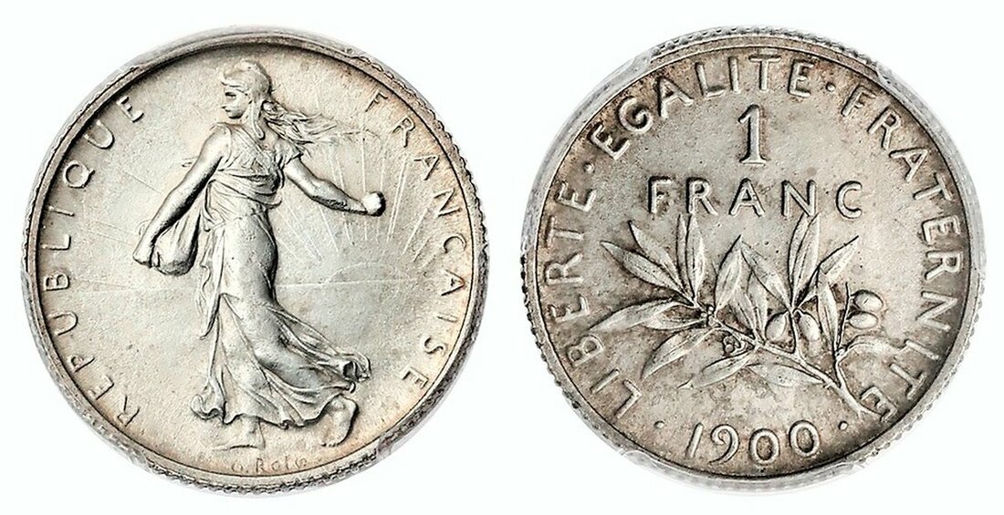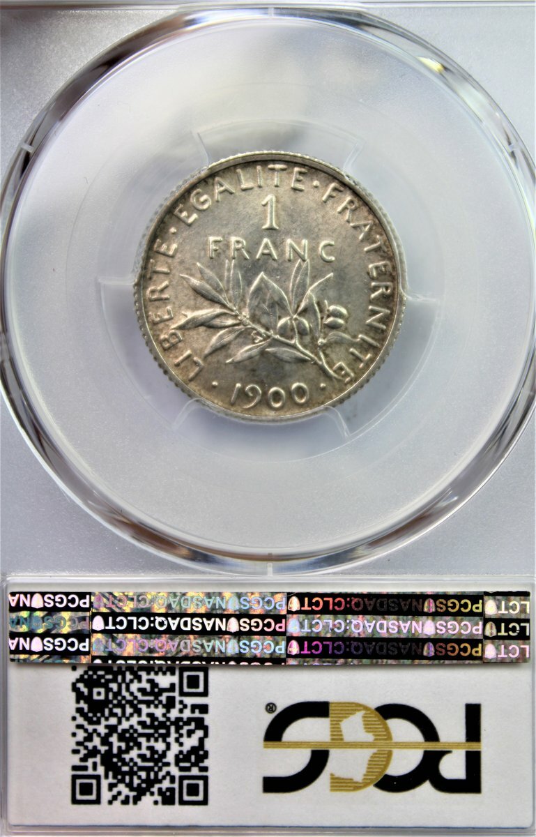 France, Third Republic (1870-1940), Franc, 1900 (Le Franc 217; Gad 467; KM 844.1), lustrous, the key date of series with only 99,000 pieces struck, in PCGS holder, graded MS61