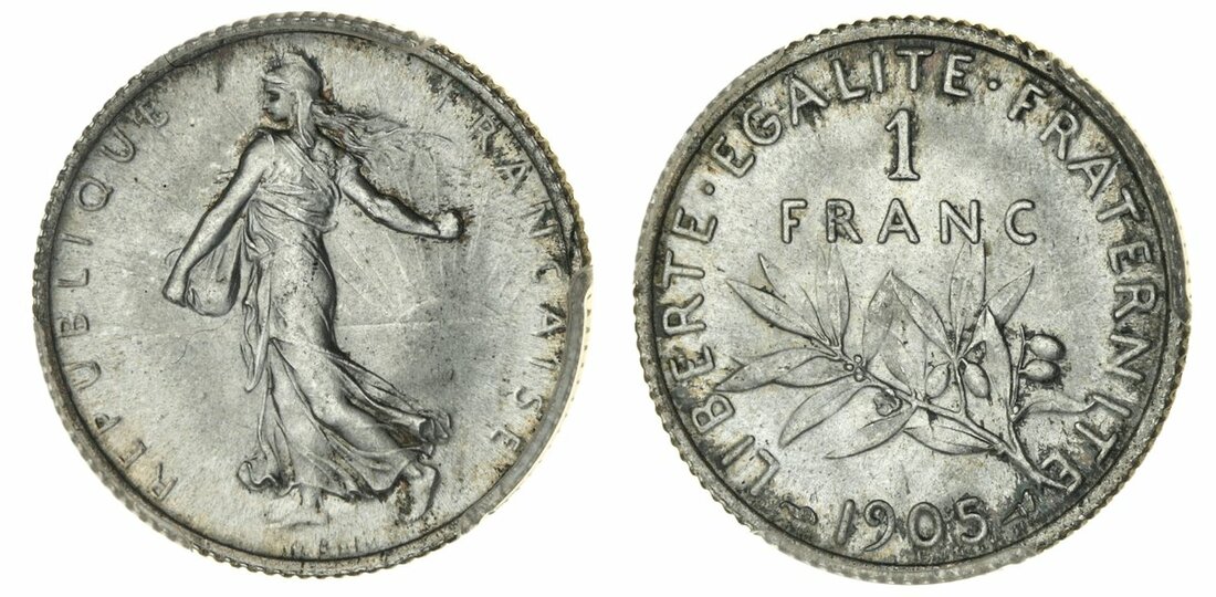 France, Third Republic (1870-1940), Franc, 1905 (Le Franc 217.10; Gad 467; KM 844.1), choice mint state, in early PCGS holder, graded MS64