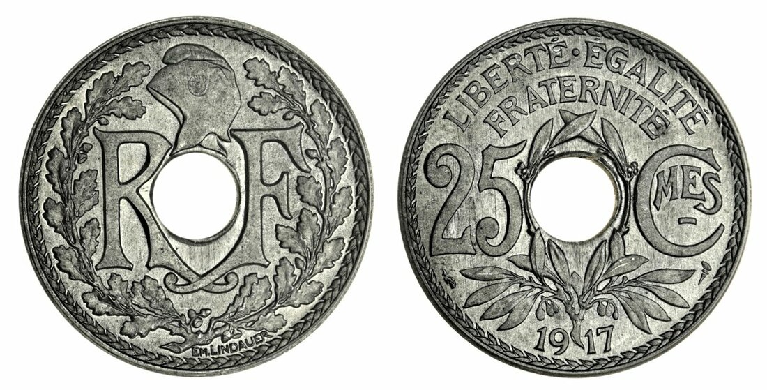 France, Third Republic (1870-1940), 25-Centimes, 1917, with dash (Le Franc 170.5; Gad 379; KM 867), choice mint state, the joint finest and the key date with only 65,038 pieces reportedly struck, in early PCGS holder, graded MS67