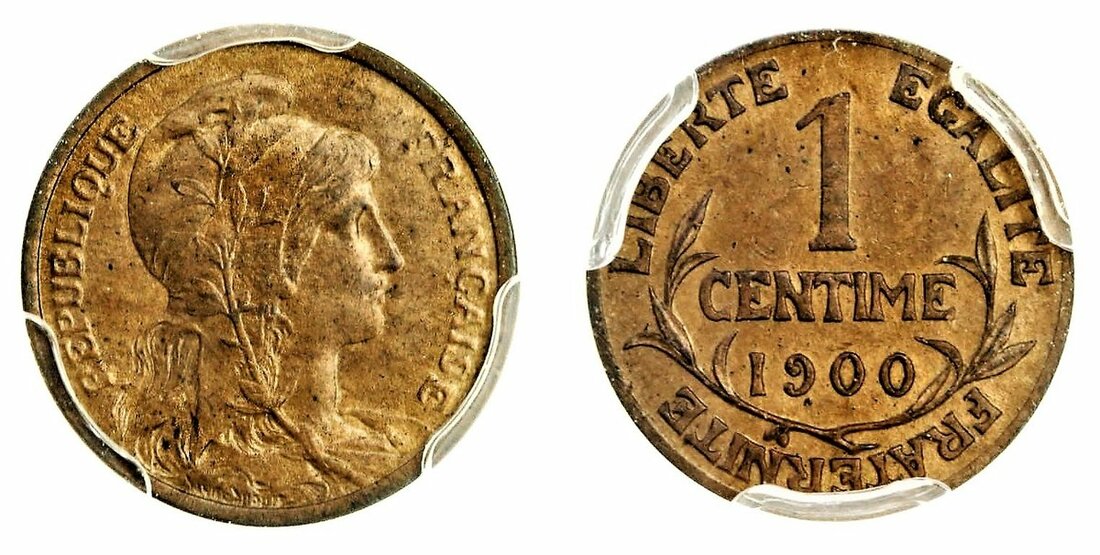France, Third Republic (1870-1940), Centime, 1900, Toulouse (Le Franc 105.4; Gad 90; Maz 2100; KM 840), full mint colour, much as struck, a key date, rare in this condition, in PCGS holder, MS64RD